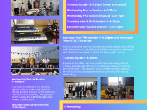 Sessions Year 7&8 – Mon 4-5.30pm / Years 9, 10 & 11 – Thurs 4-5.30pm / Saturday – Year 7 to 13 – 10.30-12pm