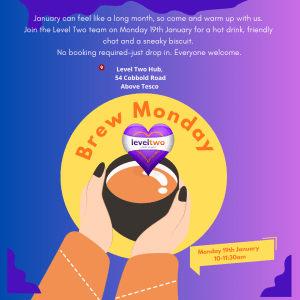 Join the Level Two team on Monday 19th January, 10–11am for a hot drink, friendly chat and a sneaky biscuit.