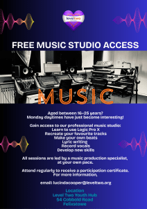 Home » Level Two News » Free Music Studio Access – Monday Daytime – 16 to 25 Years Old