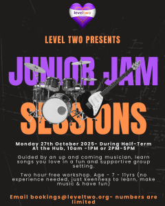 Home » Level Two News » Junior Jam Session – Monday 27th October 25 – Age 7 to 11 years – Slot 10am-1pm or 2pm until 5pm.